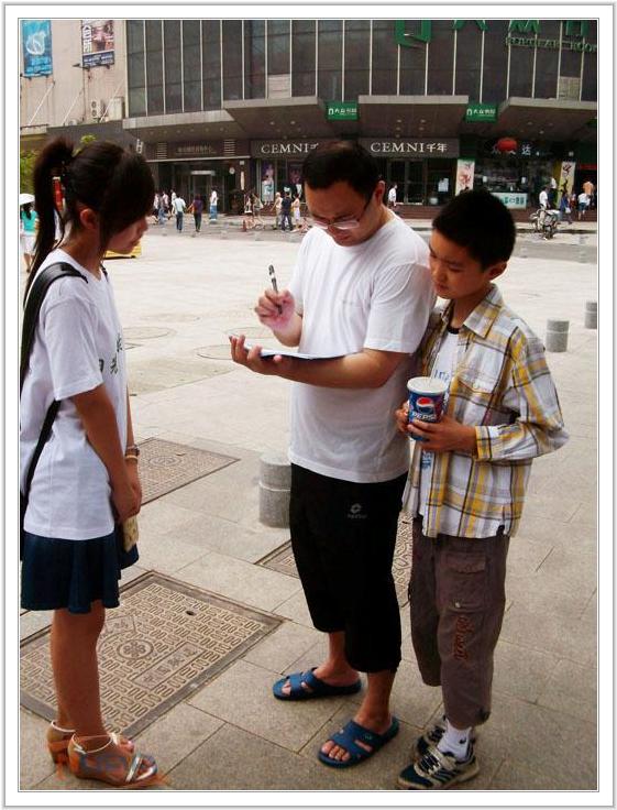 7月4日下午,在建军节即将到来之际,申搏自动化学院“阳光下的星星——走近军人,感悟军之精神”暑期社会实践团队,在新街口大众书局对面,开展面向普通路人以军之精神为主题的问卷调查活动。 中午11点半,“阳光下的星星”实践小分队顶着炎炎酷暑,到达南京市新街口大众书局所在的交叉路口旁的空地处开展活动。在接受调查者中既有白发苍苍的老人,也有稚气未脱的孩童,还有时尚前卫的青年人。本次问卷调查共采访了约200名行人,其中10-40岁年龄段愿意接受问卷调查的人数居多。实践小分队设计的问卷内容非常丰富,主要以“军之精神”为主题,也涉及一些军史常识、国防知识以及个人对国防建设的看法和观点。经过队员的调查分析,形成了以下几个结论:在30岁以下人群中青少年接触过军人比例高达70%,这是一个可喜的现象,说明当今在校学生与军人的互动明显增强了许多;对于是否愿意参军的问题,20岁以上群众大都表示愿意, 20岁以下的青少年大都因为不是很了解参军的意义所以表示出不大愿意参军;大家对建军节为8月1日都比较熟悉,但对建军年份并不十分清楚;只有三成的人知道我国除陆、海、空外的第四兵种是“第二炮兵”,军史及国防常识的普及还有一段很长的路要走。 很多中学生父母对于既普及知识,又能引起人们关注国防的社会实践调查活动很是支持,他们认为国防教育应该从小抓起,使国防理念深深扎根于孩子的心中。该团队小组成员经过讨论则认为,国防教育面对不同的年龄段的人应该有着相适宜的方式,比如对年龄较小的孩子可以予以以图片为主体的感性教育,对青少年可以施以相对理论性较强的教育,对其他普通民众可以以宣传为主的普及教育。因人而异的国防教育会取相对较好的成果。 调查活动得到了周围行人的积极支持,无论是父母领着年纪尚轻的孩子认真的共同完成问卷,还是路过的情侣微笑着在横幅上留名表达自己的支持;无论看不清印刷字体的老爷爷在队员的帮助下回答问卷上的问题,还是参过军的退伍军人都热情的和团队队员分享他们的感受,甚至是外国人也驻足停留关注实践活动活动。傍晚时分,“阳光下的星星”暑期社会实践之新街口问卷调查活动圆满结束,队员们汗流浃背却满载而归,真正体会到走入社会的实践真谛。