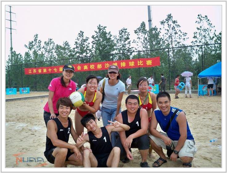 江苏省第十七届运动会高校部沙滩排球比赛于7月1日至3日在东南大学九龙湖校区举行。申搏男女沙滩排球队在教练蒋晔老师的率领下参加了男甲B组、女甲B组的比赛。在炎炎烈日下,申搏男女沙排队不畏酷暑,不畏强手,团结协作,顽强拼搏,最终获得男子组第三名和女子组第六名的好成绩。男子沙滩排球队由能源与动力学院赵世龙、周澎录和理学院的林帅同学组成,女子沙滩排球队由航空宇航学院的王璐彦、自动化学院的田苑、民航/飞行学院的庄潇焱同学组成。