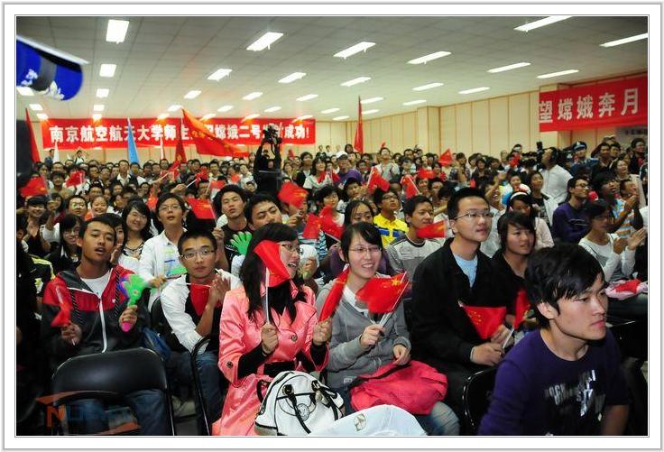 10月1日晚,申搏将军路校区艺术中心多功能厅被挤得水泄不通,数百名各学院学生齐聚一堂,共同参加由申搏团委、宣传部联合主办的“揽月‘嫦娥二号’发射直播”集体观看活动。同学们手挥着国旗、高喊着口号一起见证了我国航天事业又一重要的时刻。申搏以嫦娥二号发射为契机,积极邀请各大媒体来校报道。前来现场报道的有中国新闻社,中央电视台、江苏电视台城市频道和公共频道、江苏教育电视台、南京电视台新闻综合频道和十八频道等多家电视媒体,中央人民广播电台、南京人民广播电台等2家电台媒体以及新华日报、扬子晚报、现代快报等多家平面媒体。 中央电视台、中央人民广播电台、中新社报道 中央电视台新闻频道《新闻30分》节目于10月2日12:04播出新闻《嫦娥二号成功发射 欢呼之声响彻祖国》,新闻中播出了申搏学生集体庆祝嫦娥二号成功发射时激动人心的场面,其中,申搏航天学院学生写下“申搏学子揽月九天”的文字,并激动的表达出自己的喜悦之情。 中央人民广播电台在10月2日早6:30《新闻与报纸摘要》中也报道了申搏学生集体收看“嫦娥二号”卫星发射实况并高唱《歌唱祖国》的场景。 中国新闻社记者在申搏活动临近结束时迅速的向中新社上传了稿件《嫦娥“姐妹”奔月 南京大学生连线发射地》。中国新闻网于10月1日20点34分发布了该条新闻,后很快得到搜狐、网易、腾讯、凤凰网等多家知名网站转载。 三大名牌新闻栏目直播连线 活动当天,省内拥有最高收视率的《零距离》、《直播南京》、《有一说一》三大名牌新闻栏目同时在申搏艺术中心多功能厅做现场连线报道,将军路校区艺术中心楼下多台卫星转播车的停放场面十分壮观。素有“江苏新闻联播”之称的江苏卫视《江苏新时空》栏目也于10月2日晚18时35分左右播出了申搏学生庆祝嫦娥发射活动的新闻报道。 新华日报、扬子晚报、现代快报报道 《现代快报》在10月2日的A2/3版上图文报道申搏集体观看嫦娥发射的庆祝活动,并对活动当天航天学院副院长王志瑾教授的现场解读做了详细报道。《扬子晚报》在10月2日的A6版刊出《申搏:400多名大学生齐声倒计时》的新闻报道,并配有图片。《新华日报》在10月2日的A2版刊出《“嫦二”奔月 申搏沸腾》的新闻报道。 宿管顾大叔也成媒体关注焦点 申搏2009年校园年度人物宿管员顾声宁也受邀到西昌卫星发射现场观礼,消息一经发布,立刻引起媒体关注。江苏电视台、南京电视台、扬子晚报、现代快报、南京晨报、金陵晚报等媒体均有相关报道。庆祝现场也有多家媒体与顾大叔连线,采访其在西昌的观礼见闻。