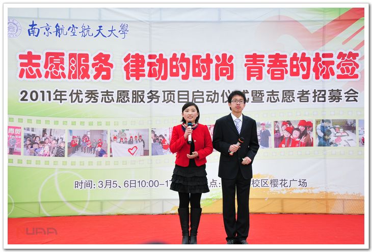 3月5日上午,由校团委主办、校团委青年志愿者工作部承办的“志愿服务律动的时尚 青春的标签”——sunbet申搏官方网站2011年优秀志愿服务项目启动仪式暨志愿者招募会在将军路校区樱花广场举行,共有73项志愿服务项目进行现场推介。在“志愿者们,出发!”号召声中,申搏2011年志愿服务活动正式启动。 启动仪式上,青工部首先通过视频回顾2010年申搏志愿服务成果,集中展现了去年志愿服务的10个精彩瞬间。随后,2011年的73项志愿服务项目进行了现场推介,包括庆祝建党90周年、2014年南京青奥会、关爱农民工子女、校庆60周年等志愿服务项目。这些项目主题鲜明、计划周密、方案详实,契合了学生们关心的热点,吸引了1000余名学生报名参加。 在启动仪式结束后,电子信息工程学院、计算机科学与技术学院志愿者走进学校西苑社区开展“简易家电维修”志愿服务活动,外国语学院志愿者到通胜客运公司开展“助力青奥,司机学外语”志愿服务活动,校青年志愿者协会也把“爱心家教”志愿服务活动带到了太平花苑社区。志愿者们以热情、周到、细致、专业的服务得到了服务对象们一致好评,也得到了学校以及共青团江宁区委领导的认可。