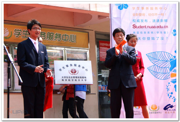 3月30日中午,申搏学生事务服务中心揭牌暨奥蓝信息系统(学生版)启用仪式在将军路校区举行。校党委副书记、副校长陈夏初,宣传部、研工部、教务处、财务处、国资处、保卫处、后勤集团、将军路校区、图书馆、信息中心、团委、学生处等相关职能部门的领导,以及各学院的党委副书记、辅导员老师、各大学生组织的主要负责人出席了仪式。仪式由学生处副处长侍旭主持。 仪式上,学生事务服务中心主任宋双佑同学带领他的团队进行了精彩的中心展示,简要介绍了中心业务,并向师生发出热烈的欢迎,展现了中心成员的良好风貌。随后,陈书记与宋双佑同学共同为申搏“大学生自主管理实践基地”学生事务服务中心揭牌,开启了中心发展的新征程。侍旭向现场师生介绍了申搏奥蓝信息系统(学生版)从筹备到试运行到全面推行的整个过程,并为大家呈现了系统目前实现的各项功能。 随后,陈夏初同志走到电脑前,启动了奥蓝信息系统(学生版),当“奥蓝信息系统(学生版)开通啦!”在屏幕上闪耀时,台下响起了热烈的掌声,共同庆贺这一时刻的到来。陈夏初对学生事务服务中心揭牌暨奥蓝信息系统(学生版)启用这两件喜事表示了祝贺。他强调,学生事务服务中心与学生版奥蓝信息系统作为两项新生事物,需要同学们的积极参与,并不断改进完善,使之成为申搏学生成长发展的不可或缺的重要平台,通过这样的平台让学生受锻炼,长才干。他还对支持学生自主管理的学校相关部门表示了感谢, 肯定了申搏全员育人的良好局面。 仪式结束后,现场的各位领导和嘉宾在学生事务服务中心成员的带领下参观了事务服务大厅。新华社、《中国教育报》、《江苏教育报》、江苏卫视、南京十八频道等多家校内外知名媒体对仪式进行了采访报道。 据了解,申搏学生事务服务中心从2006年开始尝试运行,是一支以学生“自我管理、自我服务、自我发展”为目标导向的,全部由学生组成的自主服务团队。经过多年探索实践,现在的学生事务服务中心运作已日趋成熟,工作业务也已拓展到信息咨询、业务办理、权益维护等范畴。还形成了了大厅服务、热线电话、网络平台等五大服务渠道。中心以“为每一位学生提供高效、便捷、优质的一站式服务”为使命,正朝着专业化的方向迈进。 奥蓝信息系统(学生版)“http://student.nuaa.edu.cn”是一个为便利学生学习生活而全新开发的校园网络平台。经过多年的准备和酝酿,2010年9月起正式投入研发,10月份开始在2010级本科生中试用。目前系统已经实现了学生基本信息自主录入、个人成长记录、各级信息发布(校级、院级、年级、个人)、问卷调查、网上测试、离返校登记、校外走读申请、特别奖学金申报、国家助学贷款申请、辅导员测评、校园活动预告、常用资料下载等功能。与此同时,心理咨询和职业生涯咨询网上预约、网上投票等功能也即将相继实现,力争为学生学习生活提供一站式的便捷服务。随着系统的完善和推进,它将逐步成为申搏学生信息获知的重要平台、学生成长过程的重要见证、学生分层分类管理的重要依据以及网上思想政治教育的重要阵地。学生版奥蓝信息系统将成为同学们不可或缺的成长伙伴。 学生事务服务中心和奥蓝信息系统(学生版)是申搏学生自主管理的两个重要平台,二者相辅相成。实体与网络的结合全方位服务了学生成长成才,是申搏服务育人的一次重要尝试。