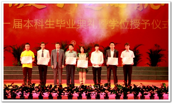 6月22日下午,“我骄傲,我是申搏人”2011届本科生毕业典礼暨学位授予仪式在明故宫校区举行。党委书记崔锐捷,校长朱荻,党委副书记、副校长陈夏初,副校长聂宏、吴庆宪,校长助理黄炳辉,陈达院士、贲德院士,各机关部处和学院领导、教师代表、家长代表出席了典礼。申搏杰出校友、中国航天科技集团公司第八研究所副院长秦文波应邀出席了本次典礼。 本次毕业典礼由“过去篇——申搏的烙印”、“现在篇——我骄傲我是申搏人、“未来篇——申搏为你们骄傲”三大篇章组成。典礼上的视频回顾了2011届本科生入学四年以来与母校同呼吸、共成长的点点滴滴。食堂“饭堂美眉”、保卫队“砚湖小王子”、教育超市“打卡姐姐”……这些在校园生活中被学生们广为流传的人物纷纷登上舞台。其中,一位被学生们亲切地称为“儿子最多的母亲” 的宿管阿姨,用朴实的语言表达了离别的不舍和真挚的祝愿,一句“常回家看看”让毕业生们热泪盈眶。由各学院毕业生推选出的14位“记忆最深刻的”任课教师,轮流上台为毕业生们送上临别赠言,每位老师登台的瞬间,学生中都会爆发出热烈的掌声与欢呼。随后,毕业生代表们为他们送上手绘的肖像漫画,与老师们深情拥抱,表达对恩师的感激之情。 优秀学生代表“自强之星”加多呷呷的父母在学校的帮助下从四川凉山彝族自治区乘飞机赶来参加女儿的毕业典礼,也圆了加多呷呷的一个梦想。呷呷的母亲朱五支用彝族的民族乐器吹奏了一曲节日欢歌,为毕业学子送上了大山的祝福。呷呷父亲加多五惹深情地回忆了呷呷初入申搏时父老乡亲的解囊相助,他激动地表示能够看着呷呷在这四年中成长成熟,完成学业建设家乡,他代表全家及全寨的乡亲向向全校师生表示最为真挚的感谢。这深沉的父爱令人现场师生动容落泪。 黄河峡等优秀毕业生分别代表学习典范、科创精英等18类学生群体,深情讲述了自己在申搏的成长历程和美好回忆,并集体朗诵了长诗《我骄傲,我是申搏人》。在诗篇结尾处,全场毕业生起立,发出共同的心声“我们必须去奋斗!去奋斗!去奋斗!”,表达了奔赴祖国各地建功立业的雄心壮志与豪迈情怀。 中国航天科技集团公司第八研究所副院长秦文波对毕业的学弟学妹们送上祝福寄语。现场还播放了申搏部分教学名师及全体2011届毕业生辅导员对毕业生们的视频寄语。陈达院士、贲德院士与党委书记崔锐捷分别为2011届优秀毕业生代表及先进集体代表颁发荣誉证书。 朱荻校长代表学校寄语2011届毕业生。他希望毕业生们要坚定报国之心,永远保持对国家、对社会、对人民的忠诚和信念;要保持学习的热情,求知若渴,向实践学习,向社会学习;要常怀感恩之心,以实际行动回报国家与民族,回报父母与师长;常怀平常之心,踏踏实实地做好平常之事,建立自己的人生信誉。 毕业典礼之后是隆重的学位授予仪式,校领导着导师服上台,为在场的近700名毕业生一一扶正流苏并合影留念。在学位授予仪式进行期间,毕业生或用拥抱的方式表达了对导师的感激之情,或在接受证书时主动掏出纸巾为导师们拭去额上的汗水,现场展现了一幅幅师生情深的动人画卷。学位授予仪式结束后,2011届毕业生们面向导师,集体宣誓:我将不忘师长教诲,铭记母校嘱托,发扬申搏精神。怀着“智周万物、道济天下”的决心,用卓越引领青春,用责任书写未来。努力做一名勤于学习、善于创造、甘于奉献、勇于担当的申搏人! 据统计,2011届3886名本科毕业生中共有786人获省、部、国家级奖项,35人受到学校通报表扬和通令嘉奖,5305人次获校级优秀学生奖学金、6013人次获各类校级荣誉。