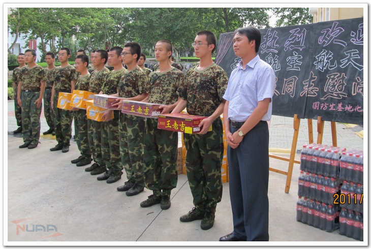 8月11日下午,受校领导委托,学工部副部长侍旭、人武部副部长李辉以及部分院党委副书记组成慰问团赴南京炮兵学院,慰问了在此进行暑期军政集训的申搏2010级82名国防生。南京炮兵学院基础部主任郑建平,政委朱荣军和65队教导员范超雄接待了申搏慰问团。 在走访慰问中,侍旭代表学校向国防生表达了关心和鼓励。慰问团成员走访了军训团学员宿舍,查看了寝室内务卫生状况,并与参训国防生们亲切交谈,了解他们的学习生活情况,送上解暑的水果及饮料。国防生非常感谢学校对他们的关心,并一起为慰问团表演了大合唱《打靶归来》,这一节目展现了他们朝气蓬勃的精神面貌。 据悉,本次国防生暑期军政集训历时一个月,国防生们以普通一兵的身份与部队官兵同吃、同住、同生活、同学习、同训练,通过理论学习、队列训练、战斗训练等方式,进一步巩固保家卫国的信念,练就过硬军事本领。