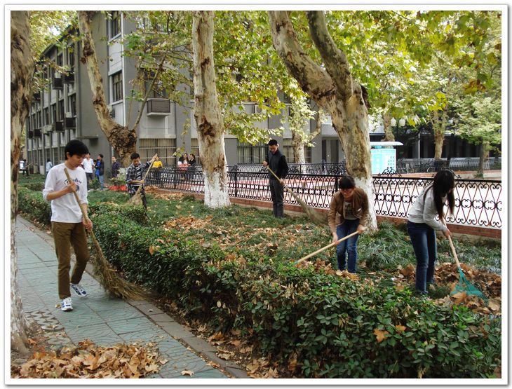 13日下午,学生事务服务中心的成员们跟随后勤集团服务中心的各位环卫师傅们开始了对校园的清扫工作。他们之中有些深入校园,对道路两旁的垃圾进行仔细地查找与清扫;有些深入图书馆、教学楼等公共场所,对公共设施进行认真地清洁与擦拭。每一位同学都热情高涨,工作认真卖力,真正地将“服务同学,快乐你我”融入到行动当中。14日,自动化学院30名同学与后勤的环卫工人一起组织清扫了明故宫校区道路上的落叶。南京虽已入秋,但午后的温度加之大家的工作热情还是让大家满头大汗。