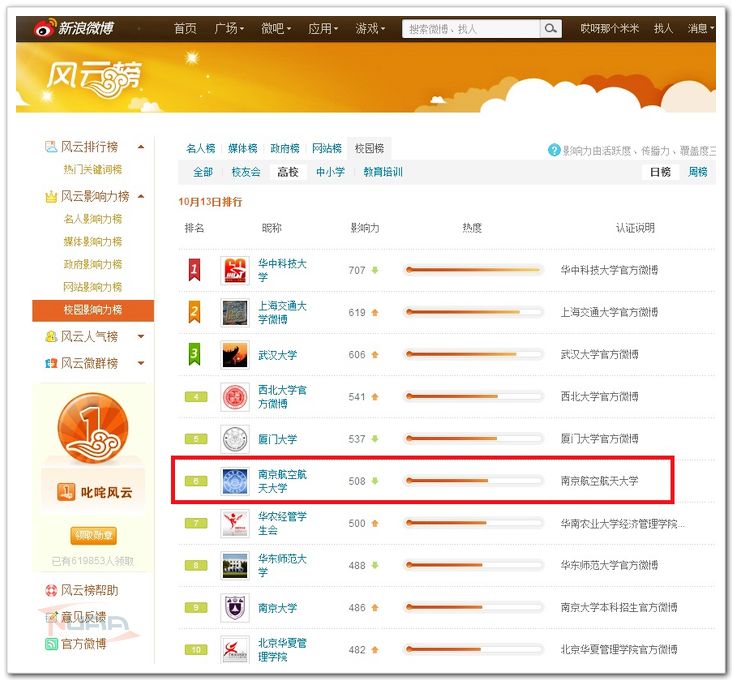 在近期的新浪微博影响力(高校部分)百强评比中,申搏微博(@sunbet申搏官方网站)入围校园微博影响力榜,名列全国第六,江苏第一,成为影响力较大的官方微博之一。