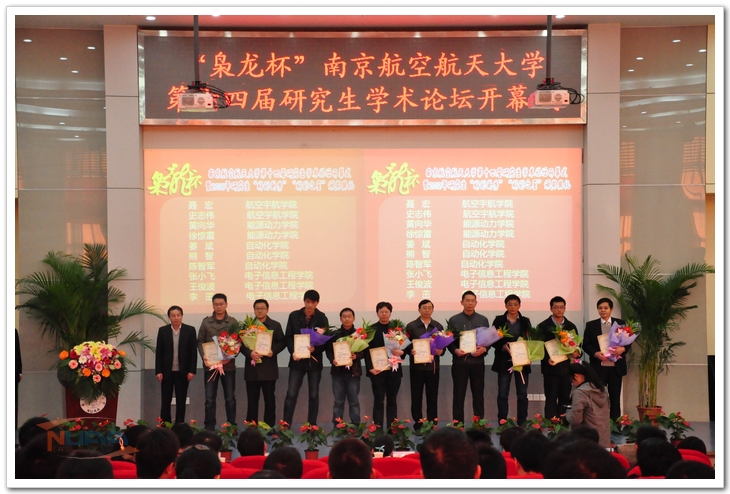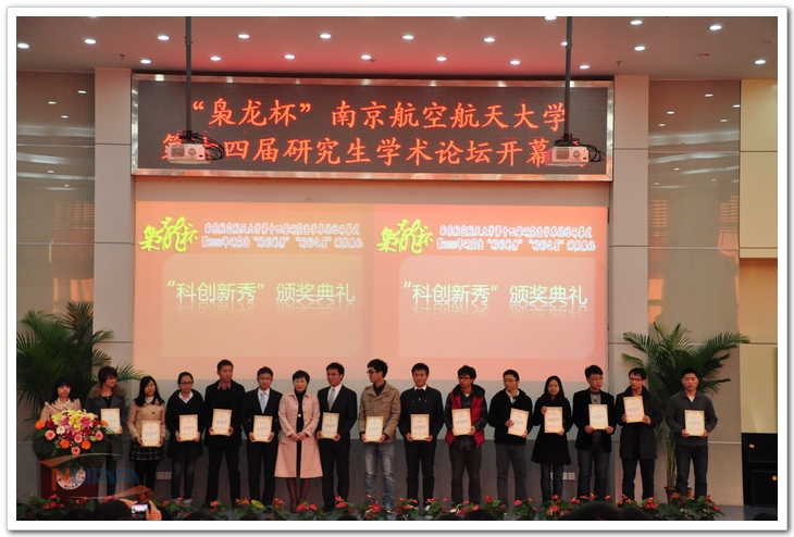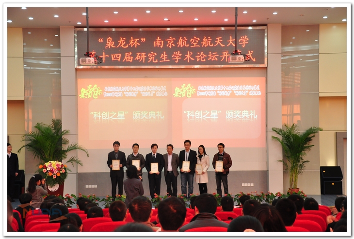 11月14日下午,由研究生院、校团委及校科协联合主办,校研究生会承办的“枭龙杯”第十四届研究生学术论坛主论坛暨2012年研究生“科创新秀·科创之星”颁奖典礼在将军路校区隆重举行。申搏副校长、研究生院院长聂宏,江苏省学生联合会执行主席孙洪洋及申搏研究生院、校团委、将军路校区管委会等相关部门和学院的负责同志出席了开幕式。