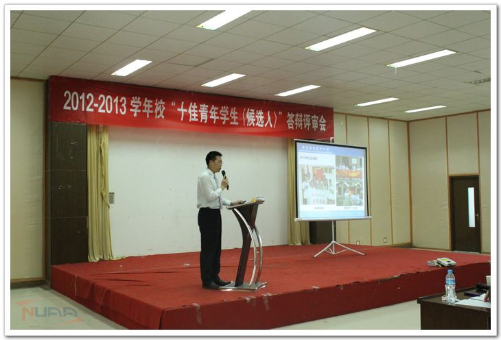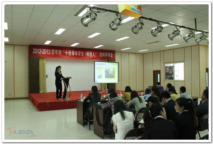 4月15-16日,学校举行2012—2013学年团内评优之十佳百杰青年学生评审答辩会。一年以来,在创新创业、学习科研、志愿服务、自强不息、文艺体育、引领同学、爱国荣校等某一方面具有闪光点的10个特质序列100名同学结合自身实际,或陈述奋斗历程,或畅谈心得思考。历时两天、四个场次的评审答辩会充满了催人奋进的正能量。