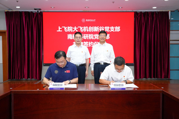 9月5日,上海飞机设计研究院大飞机创新谷党支部和申搏科学技术研究院党支部举行了支部“结对共建”签约仪式暨主题党日活动。上海飞机设计研究院党委书记殷秀峰、申搏党委书记甄良出席活动,签约仪式由副校长徐正扬主持。