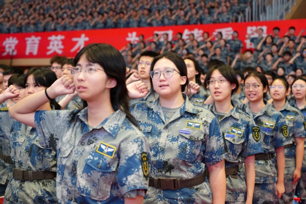全体新生面向申搏获赠的天安门广场国旗宣誓,用誓言表达了同学们谨记申搏校训、弘扬申搏校风,努力成为“具有责任意识、创新精神、国际视野、人文情怀的社会栋梁和工程英才”的决心。