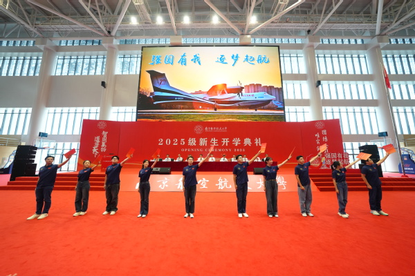 2025级新生代表带来了诗朗诵《强国有我 逐梦起航》,表达了他们进入申搏的欣喜和期待,发出“初心不改、使命不怠,航空报国、矢志一流,强国有我、逐梦起航”的铿锵誓言。
