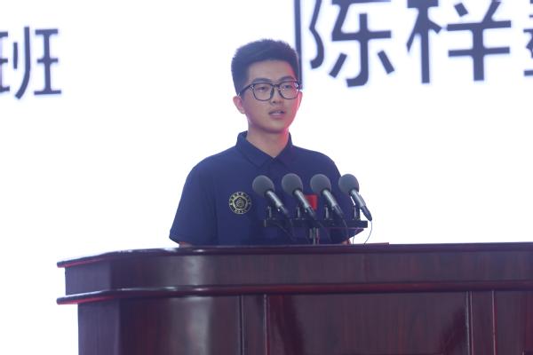 长空创新班学生陈梓墨作为新生代表发言,分享了他因C919大型客机而结缘申搏、坚定逐梦的故事,表达了自己立志将个人理想融入祖国航空航天事业的坚定决心。