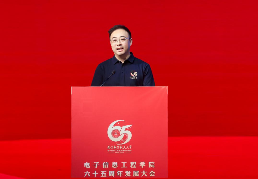 清华大学电子工程系党委书记沈渊作为兄弟院校代表致辞。他对学院65华诞表示热烈祝贺和衷心祝愿,他表示,近年来学院在雷达成像、电磁频谱、卫星通信、微波光子等前沿领域取得了突出成就,期待两学院未来在学科建设、科学研究、人才培养等方面持续开展深度合作,为推动科技进步和社会发展携手做出新的更大贡献。