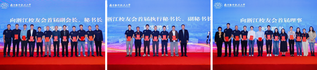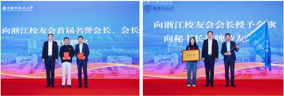 张启钱为新任名誉会长、会长颁发聘书,向浙江校友会授予会旗,并为“sunbet申搏官方网站校友之家(浙江地区)”授牌。国际创新港建设办公室主任杨杰,浙江招生组组长、机电学院教授陈文亮为新任副会长、秘书长代表颁发聘书,李和新为新任执行秘书长、副秘书长颁发聘书,发展联络部副部长、校友总会副秘书长周佼佼,自动化学院党委副书记阙愚为新任理事颁发聘书。