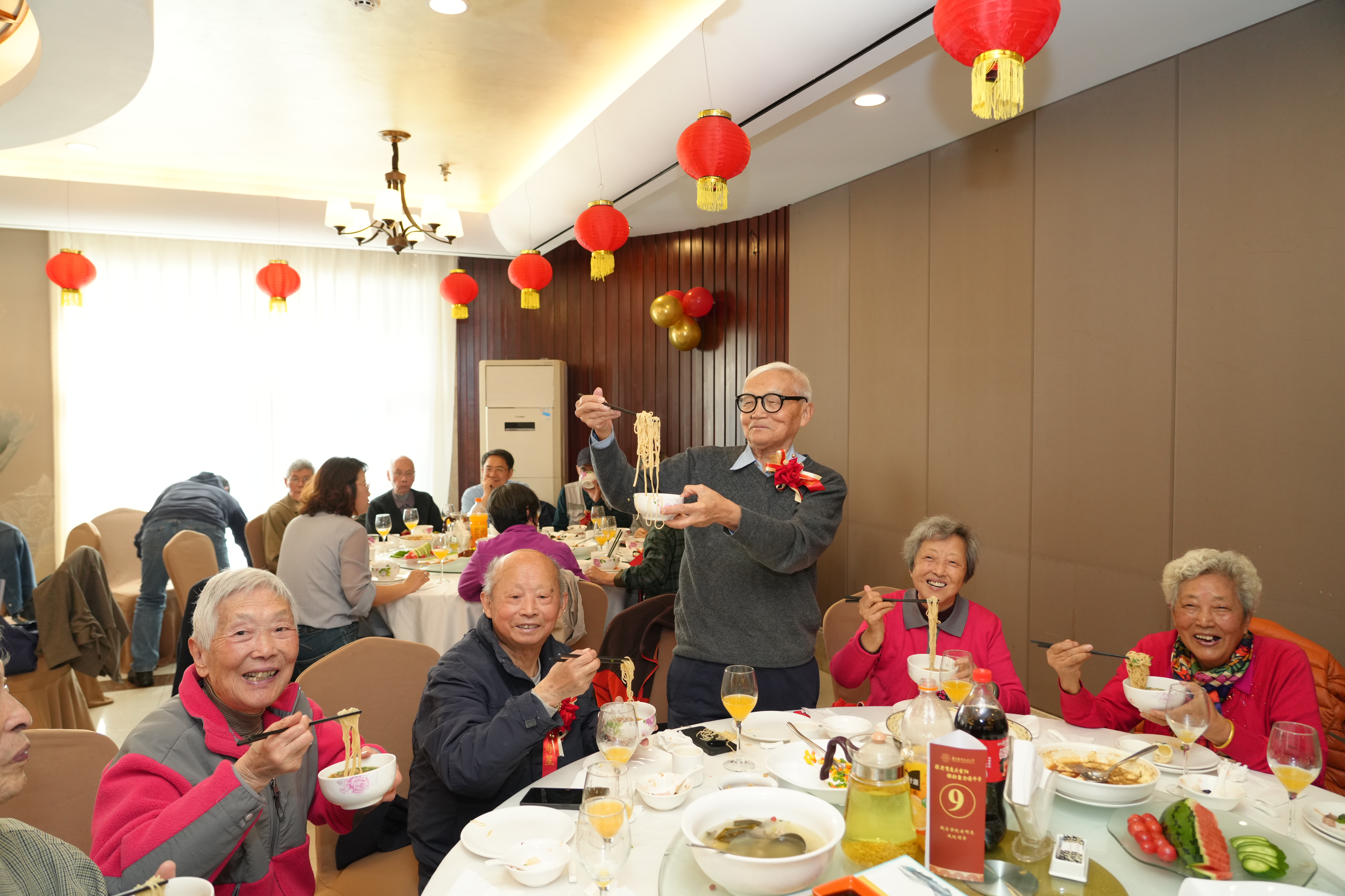 重阳节集体祝寿作为学校尊老敬老爱老的经典传统活动,不仅是一场生辰的庆贺,更是一曲对薪火传承的深情礼赞。今年学校适逢整岁的寿星有178人,其中70岁75位、80岁35位、90岁66位、100岁2位,寿星吃“四碗面”已成为学校的优良传统,“保二争三创四”也已成为老同志们心中的美好愿望。学校将持续深化为老服务的深度与温度,凝聚银发力量,共同续写学校高质量发展崭新篇章。