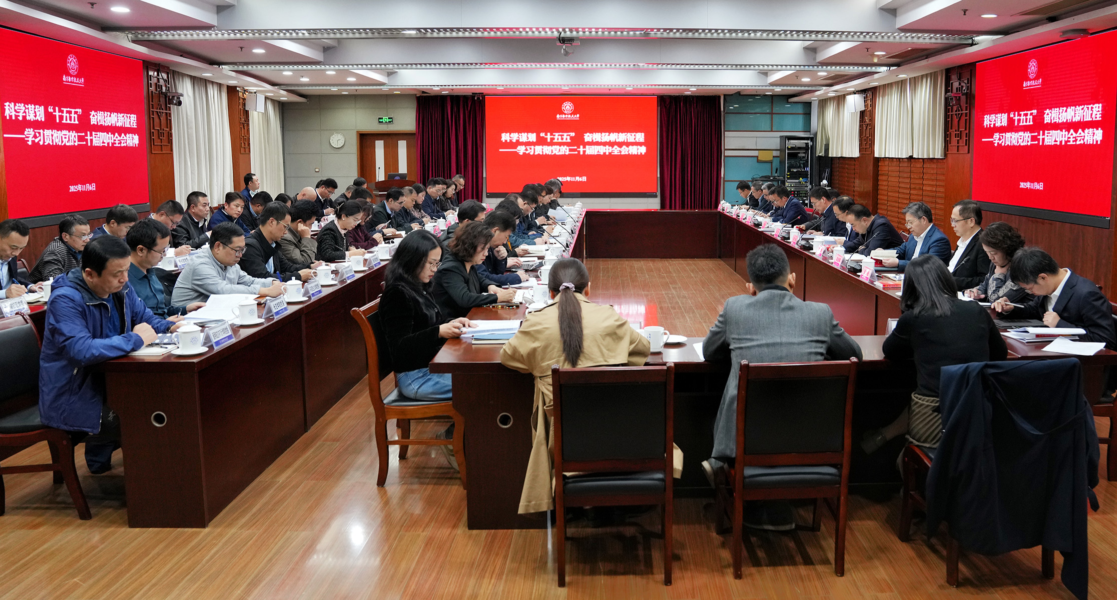 会议指出,党的二十届四中全会是在我国即将胜利完成“十四五”主要目标任务,进入基本实现社会主义现代化夯实基础、全面发力的关键时期召开的一次重要会议。习近平总书记所作的工作报告和重要讲话,全面总结了党的二十届三中全会以来中央政治局的工作,深刻阐明事关“十五五”时期经济社会发展的一系列重大问题,具有很强的政治性、思想性、战略性、指导性,为我们当前和今后一个时期的工作提供了根本遵循。全会审议通过的《中共中央关于制定国民经济和社会发展第十五个五年规划的建议》,是我们党历史上又一个重要纲领性文献,准确把握我国发展的历史方位,深入分析国际国内形势,擘画了未来5年发展的宏伟蓝图,特别是突出强调了科技创新的引领作用,对“加快高水平科技自立自强”“统筹教育强国、科技强国、人才强国建设”等方面作出了重大战略部署,为我们加快建设世界一流大学指明了前进方向。