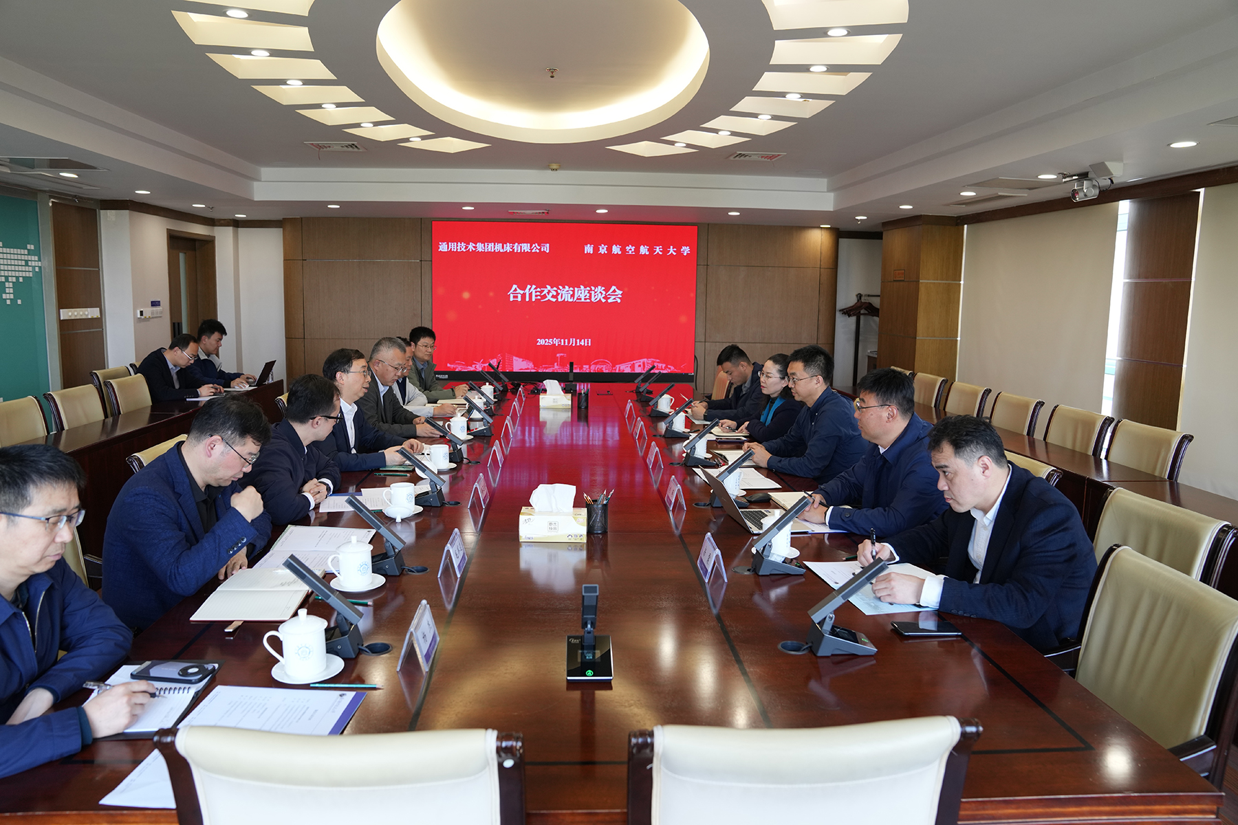 11月14日,通用技术集团机床有限公司总经理、党委副书记贺鑫元一行来校调研。校长姜斌出席座谈会。会议由副校长徐正扬主持。
