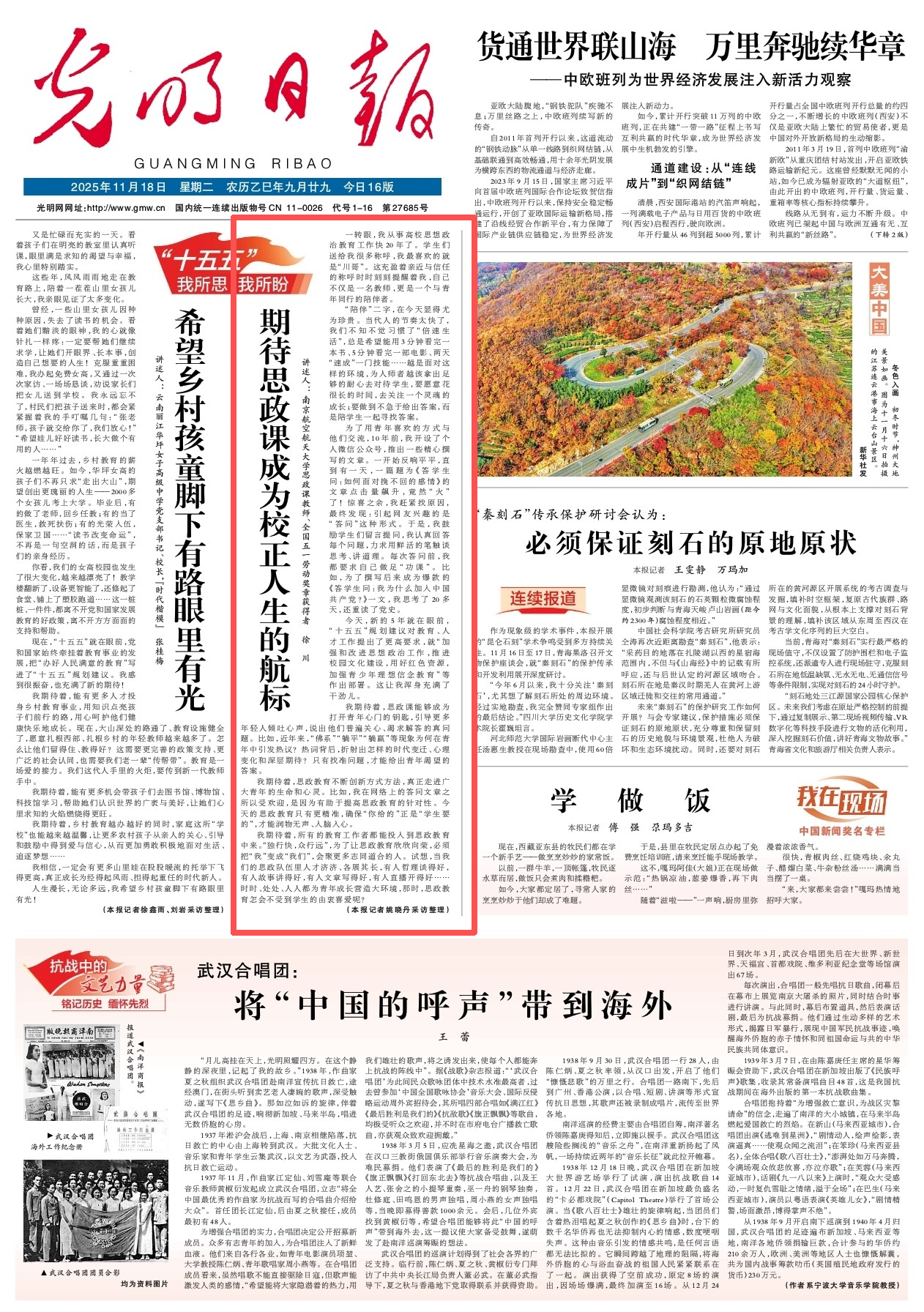 编者按:11月18日,《光明日报》头版头条【“十五五”我所思·我所盼】专栏以《期待思政课成为校正人生的航标》为题,刊发申搏思政课教师、全国五一劳动奖章获得者徐川专访。现转发全文如下: